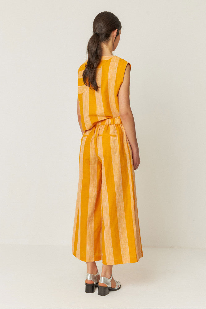 Broek Dona van SKFK is een stijlvolle en comfortabele broek die zowel functionaliteit als mode biedt. Gemaakt van ademende stoffen, biedt deze broek een lichte, luchtige pasvorm die perfect is voor de zomermaanden. Het ontwerp heeft rechtvallende pijpen en een ontspannen fit, wat zorgt voor een moderne uitstraling die zowel casual als gekleed gedragen kan worden. Verkrijgbaar in de kleuren Kokomo, Sails en Stripes, biedt deze broek veelzijdige opties voor verschillende stijlen en gelegenheden.
